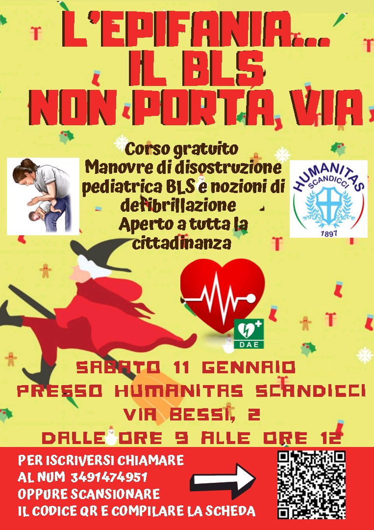 Corso gratuito manovre di disotruzione pediatrica BLS, nozioni di defibrillazioe. Aperto a tutta la cittadinanza.