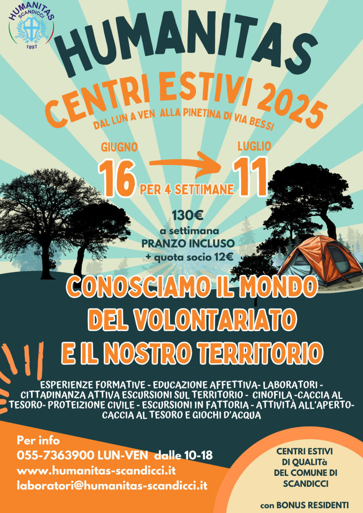 Anche quest’anno, Humanitas Scandicci organizza i Centri Estivi, un’esperienza unica pensata per bambine, bambini e ragazzi dal 9 ai 13 anni all’insegna della cittadinanza attiva, del volontariato e della cura del territorio.