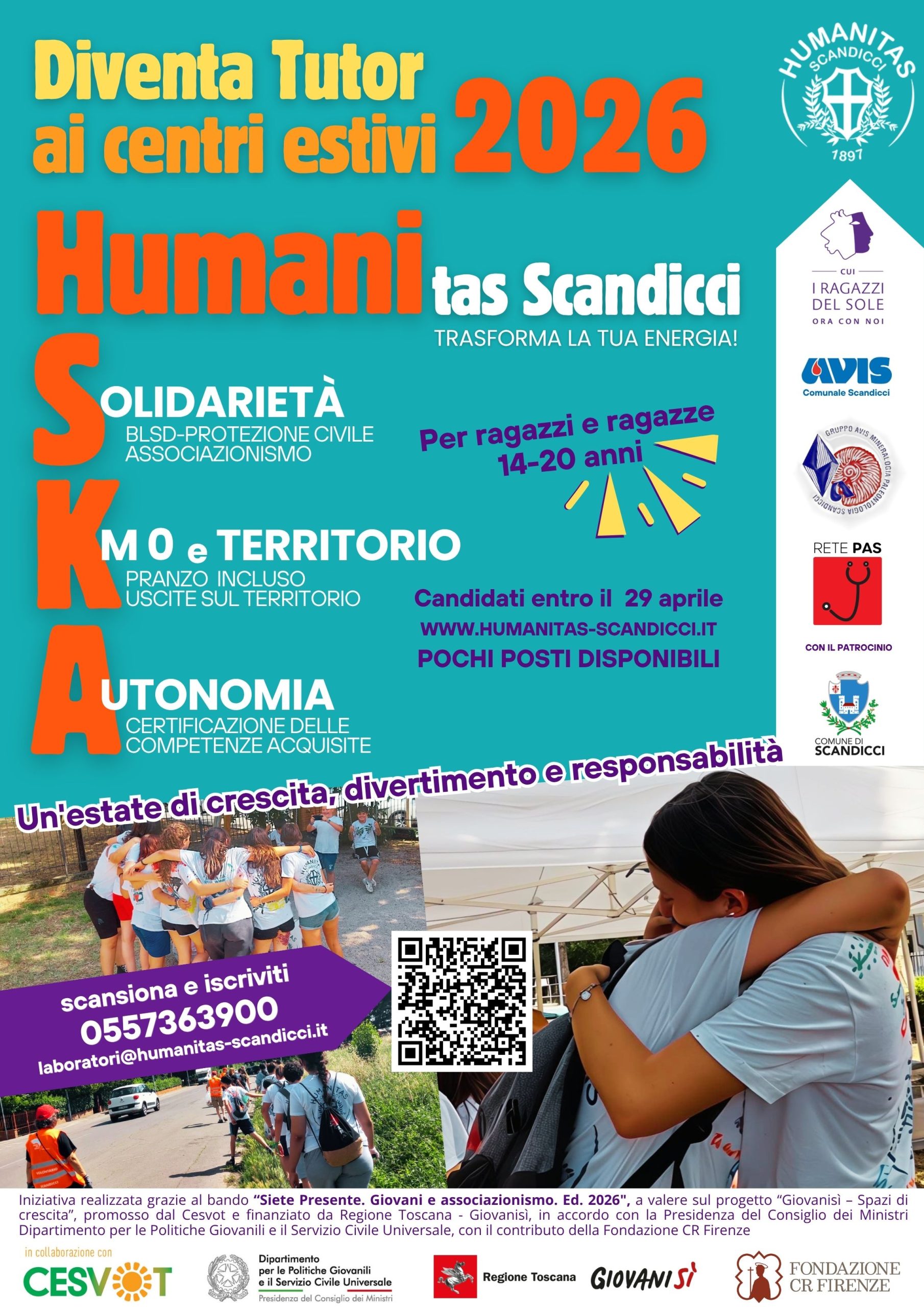 Diventa Tutor ai Centri Estivi 2026: Trasforma la tua Energia! Hai tra i 14 e i 20 anni? Quest’estate non restare a guardare, diventa animatore ai centri estivi Humanitas Scandicci con il progetto Humani SKA! 🚀 Stiamo cercando ragazzi e ragazze motivati che vogliano mettersi in gioco come Tutor nei nostri centri estivi. È un’occasione … Leggi tutto Estate Humani-Ska 2026